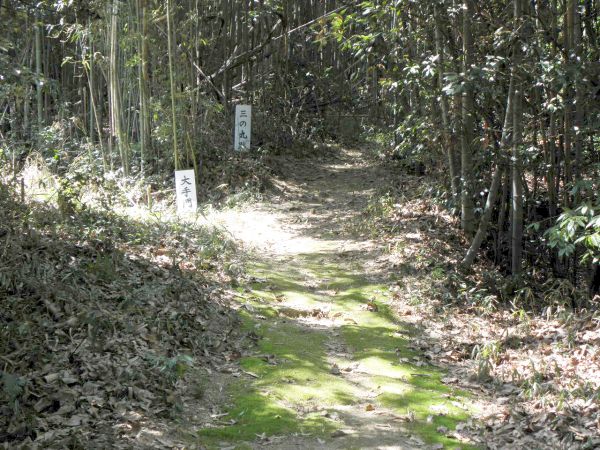 城跡は、足守川東岸近くの標高40mほどの独立丘陵(現在の岡山市下足守)にあり、東側にある登山口から本丸跡まで歩いて登りました。