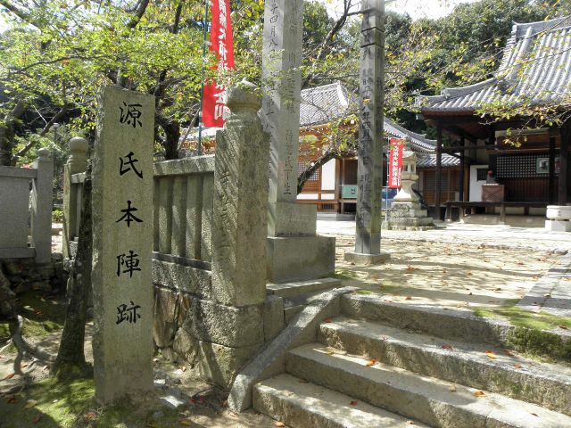 源氏の陣中から馬で海を渡ってきた佐々木盛綱は、この先陣庵のある辺りに上陸し、一気に平氏の陣に攻め入って源氏を勝利に導きました。