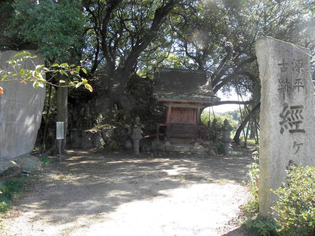 経ヶ島の頂上には源平両軍の戦没者の霊を慰める宝筐印塔と若い浦の男の霊を祀る供養塔があるそうです。