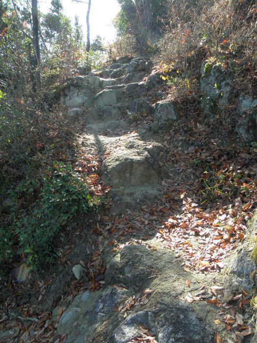 北側登り口からの道は、新庄山城の登城道だったといわれる道で、急坂ながら路面がしっかりしていて歩きやすい道でした。