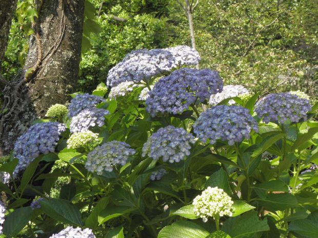 境内の紫陽花は、それぞれの色が陽光に美しく映えて、とても素敵でした。