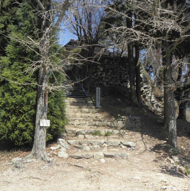 大手口ルートは、伊水小学校(宇野氏の平時の居館跡)横に登山口があり、地元の人に尋ねて手頃な場所に駐車して登りました。