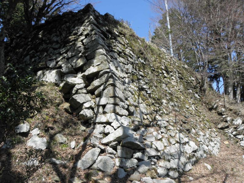 ヒイヒイいいながら何とか山上に辿り着くと、目を見張るような立派な石垣が現れ、「こんなに高い山の上にこれほどの石垣が存在しているとは・・・」と、驚嘆しました。