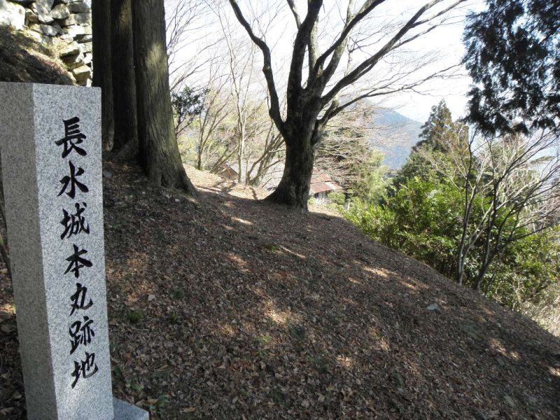 長水城跡へは、長水山南西麓の宇野から登る大手口ルートと、長水山東麓の五十波から登る搦手口ルートがあるようです。