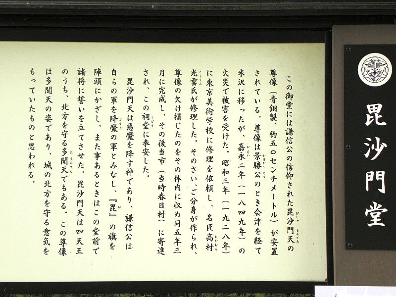 毘沙門堂は、謙信が戦の前に籠って策を練り、勝利を祈願した場所といわれます。現在のお堂は1931年(昭和6年)の再建だそうです。