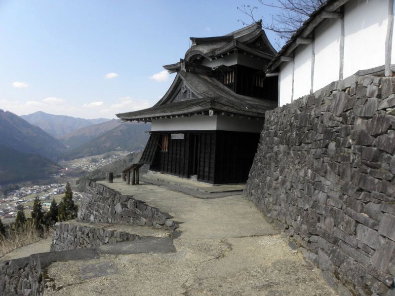 城郭内には遊歩道が整備され、二層櫓・冠木門・石垣などが復元されています。